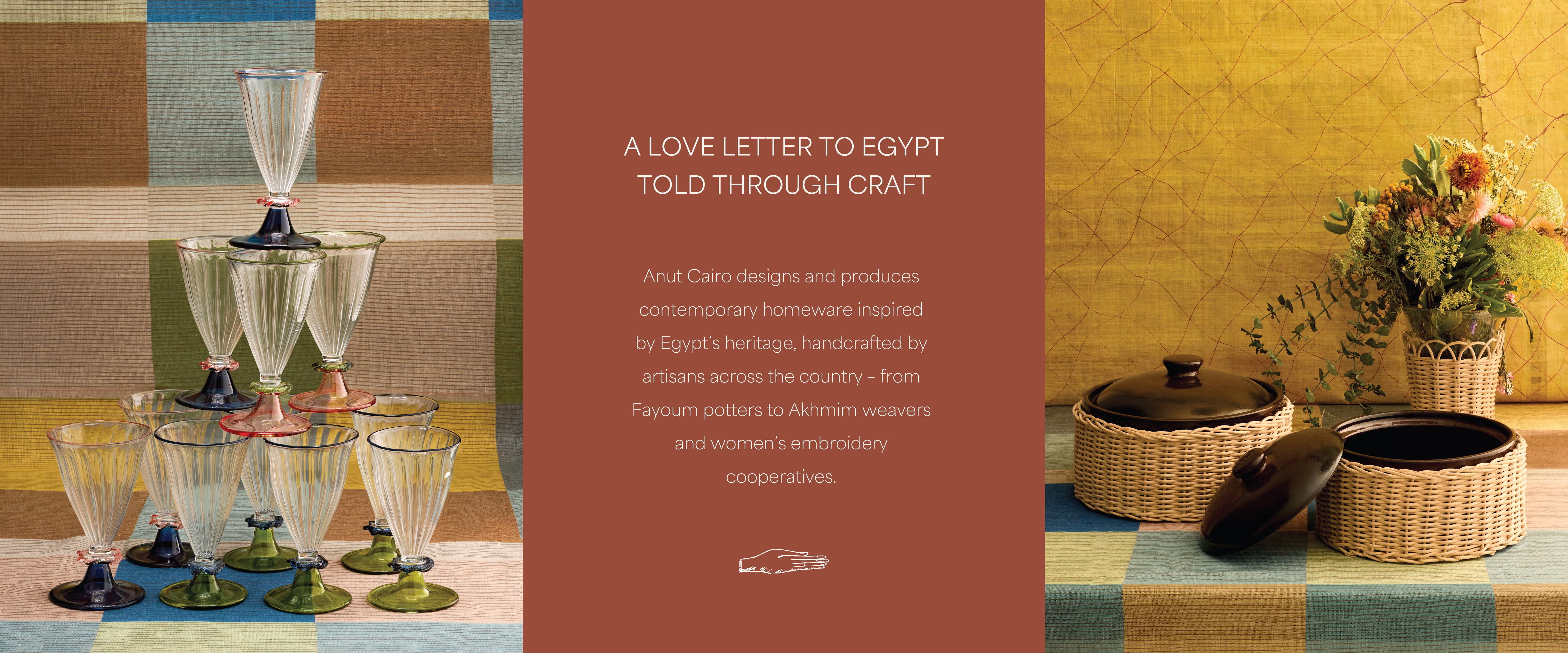 The artisans we work with span from the potteries of Fayoum to the textile weavers of Akhmim – Ancient Egypt’s historic textile centre – and local cooperatives of women embroiderers in Cairo.